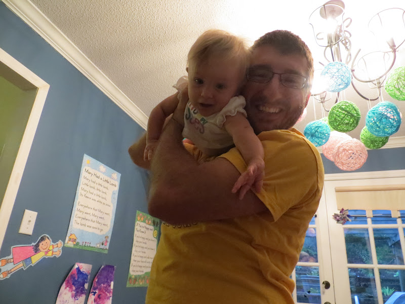 Bath time bubbles! This has been one of the Daddy's "tasks" since Grace was first born. Yes Mommy still does it a good amount of the time, but when Daddy is home, he does the bath. He is actually so much better about getting all the days food off of Grace without causing tears!